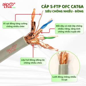 S-FTP (Shielded Foiled Twisted Pair) là loại cáp cao cấp có 2 lớp chống nhiễu: một lớp lưới tổng và một lớp lá nhôm riêng cho từng cặp dây.